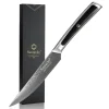 The Sonne Elite Series 5-inch Damascus Steak Knife is a top-tier model that we have recently introduced to the US market. Crafted with precision, this knife boasts 67 layers of Damascus steel, creating a striking and intricate pattern on its mirror-polished blade.